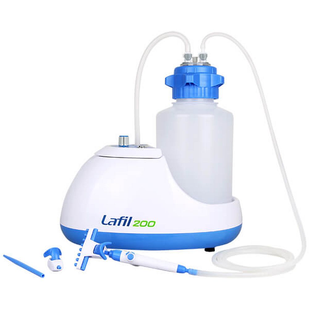• le système d'aspiration Lafil 200 intègre une source de vide, un flacon de déchets et un kit d'aspiration en un seul système